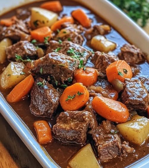 7. Servir: Una vez que el estofado esté listo, prueba y ajusta la sazón si es necesario. Sirve caliente, decorado con hierbas frescas picadas para un toque de color.